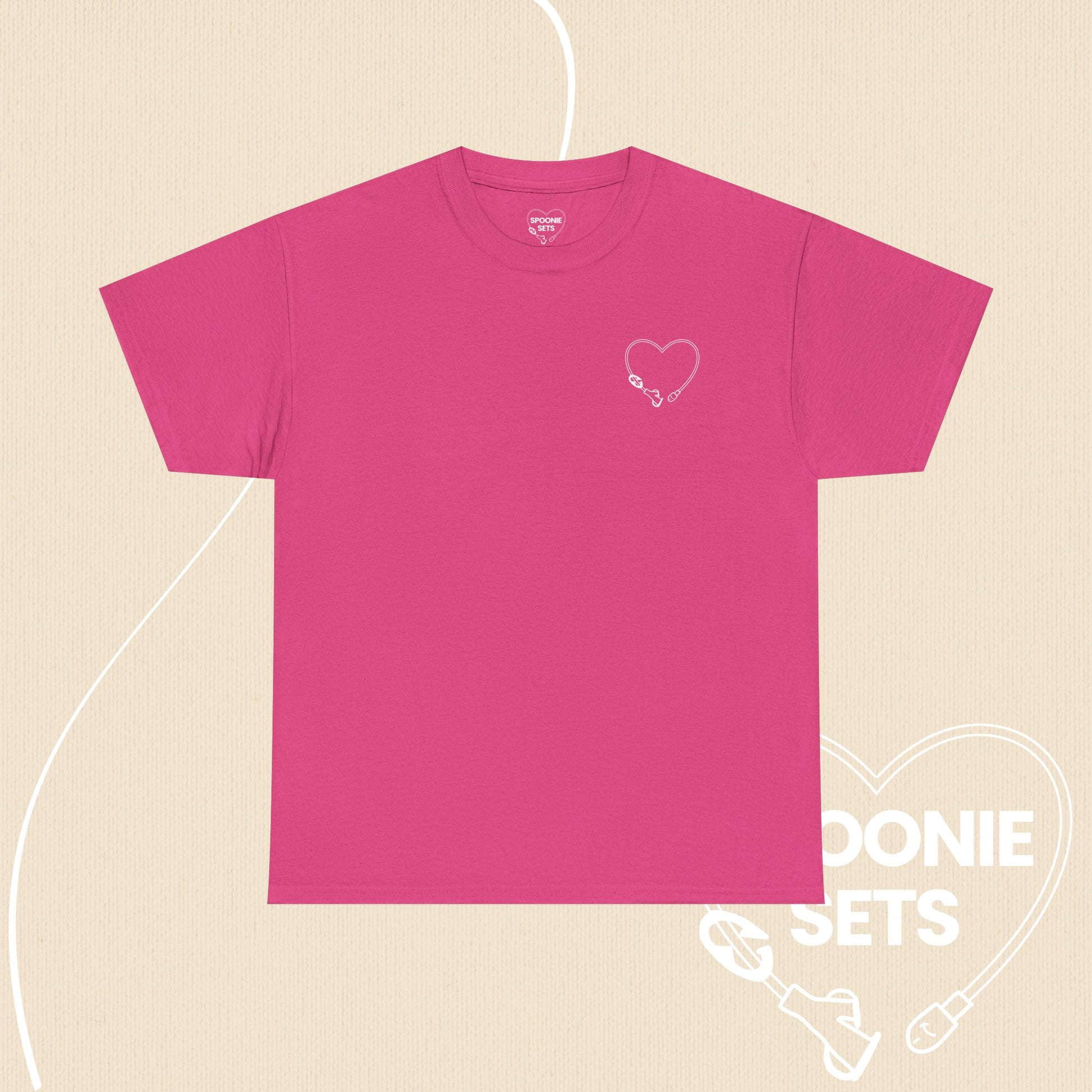A comfortable t-shirt featuring a unique design of a feeding tube shaped as a heart. Perfect for those who use feeding tubes and want to showcase their uniqueness and strength. Great for everyday wear or as a statement piece for awareness events and advocacy campaigns.